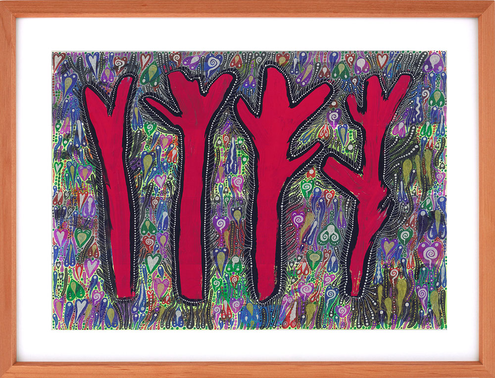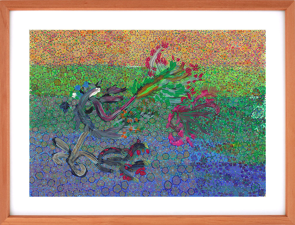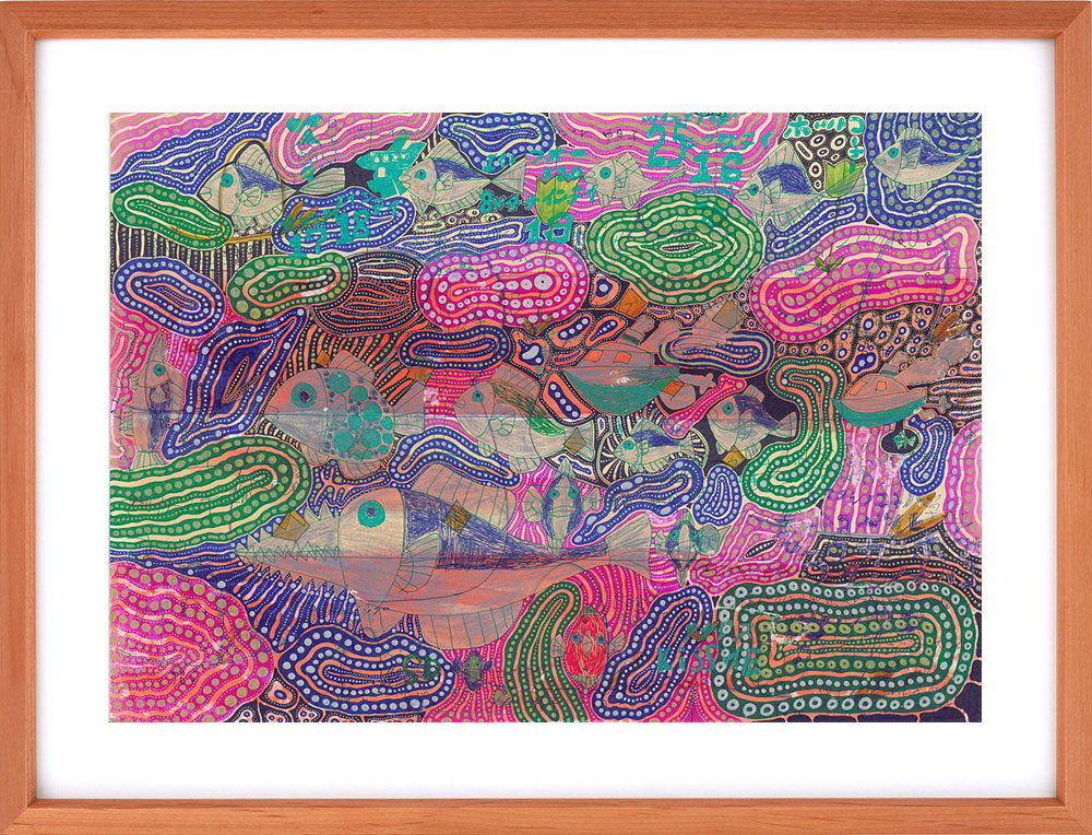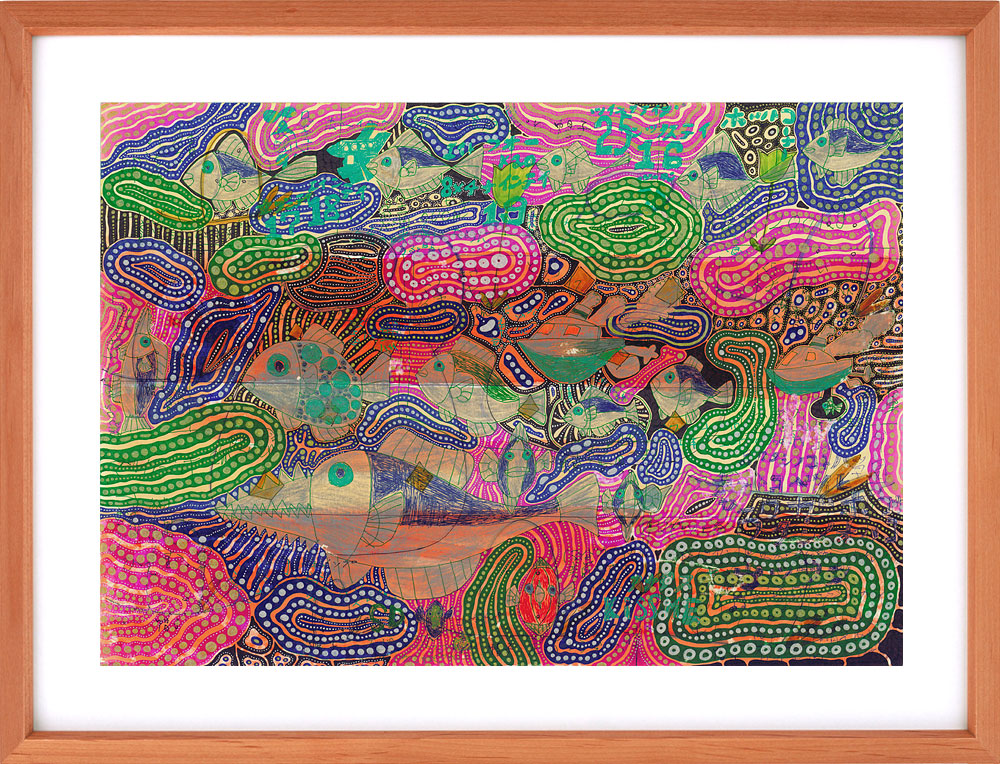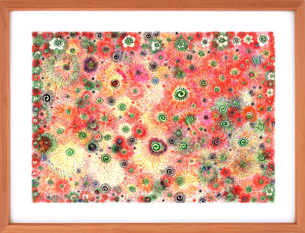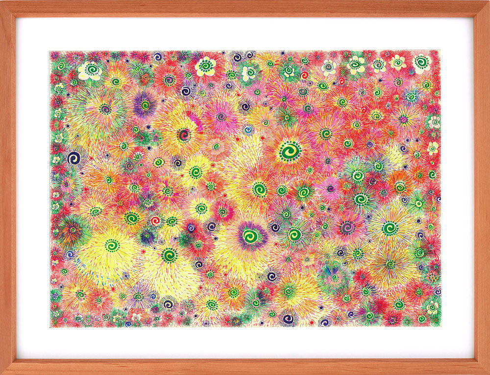 一枚の絵を複数人で仕上げる、もみの木園がいま力を注いている新しいアートへの取り組みです。感性と感性が響き合い、化学反応を起こし、圧倒的なパワーとなって生み出される自由奔放な作品たちは、アート作品は一人で生み出すものという既成概念への挑戦でもあります。