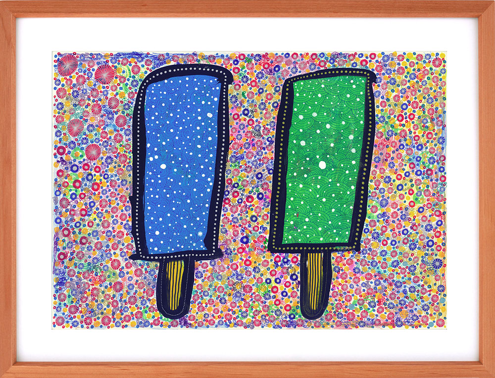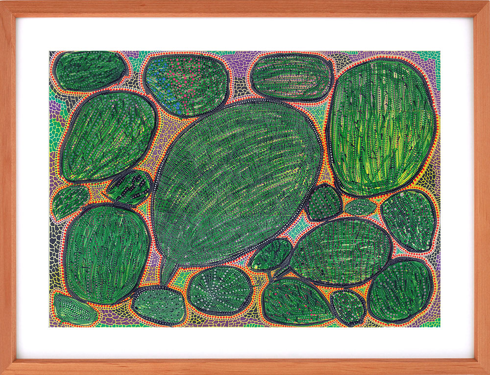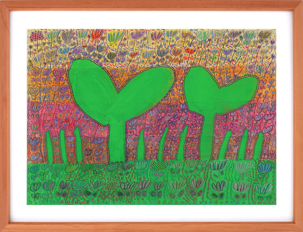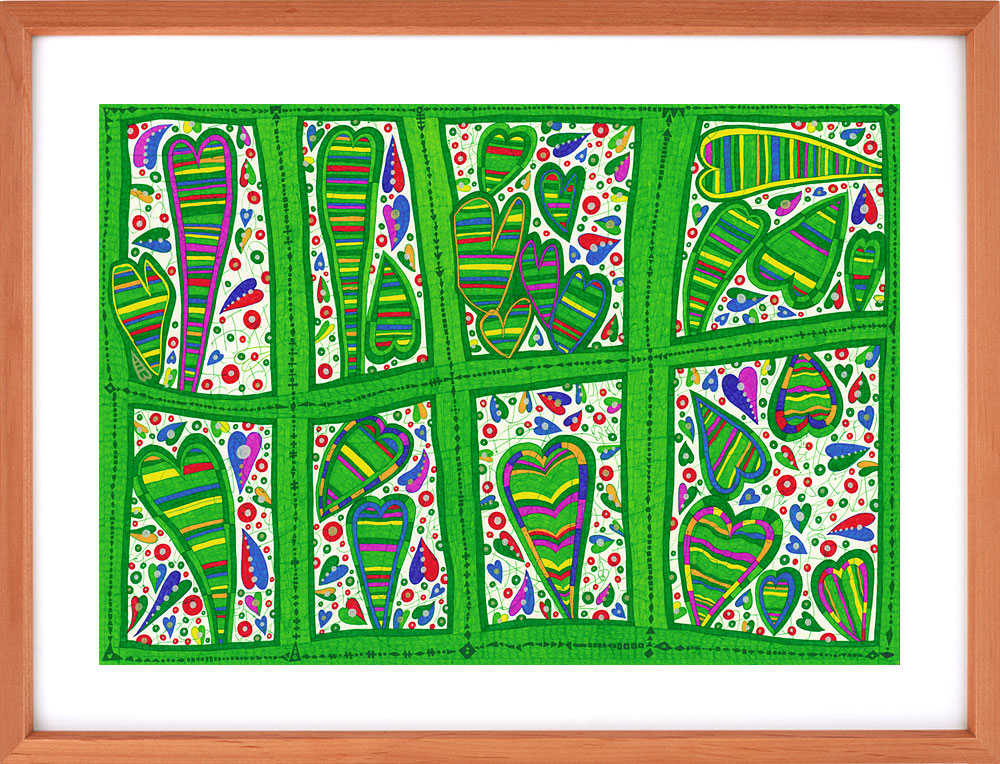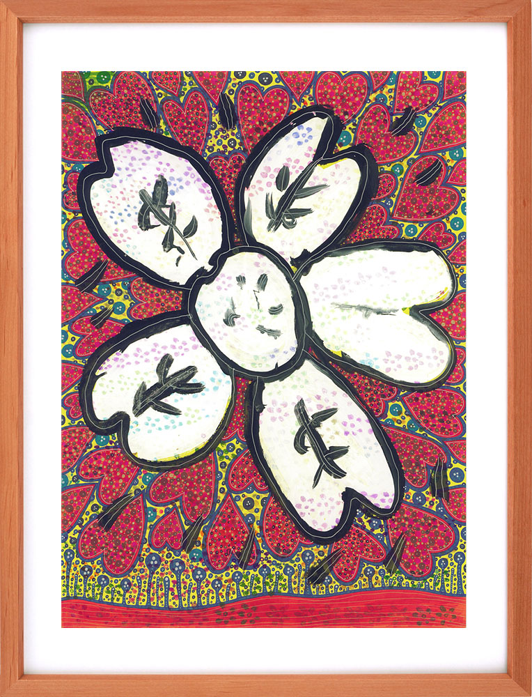 米子市の障がい者支援施設・もみの木園では「身体や心に障がいがあっても、感性に障がいはない」を理念に、アート活動が盛んに行われています。同園でアート支援に携わっている、米子市在住の絵本作家・玉井詞さんと利用者のみなさんとのコラボアート「もみの木アートアンサンブル」作品をお借りし、クリニック内に展示しています。どの作品も独創性と色彩に溢れ、観る人にパワーの癒しを与えてくれます。年に3回、シーズンごとに展示替えをしますので、ご来院の際はお楽しみください。